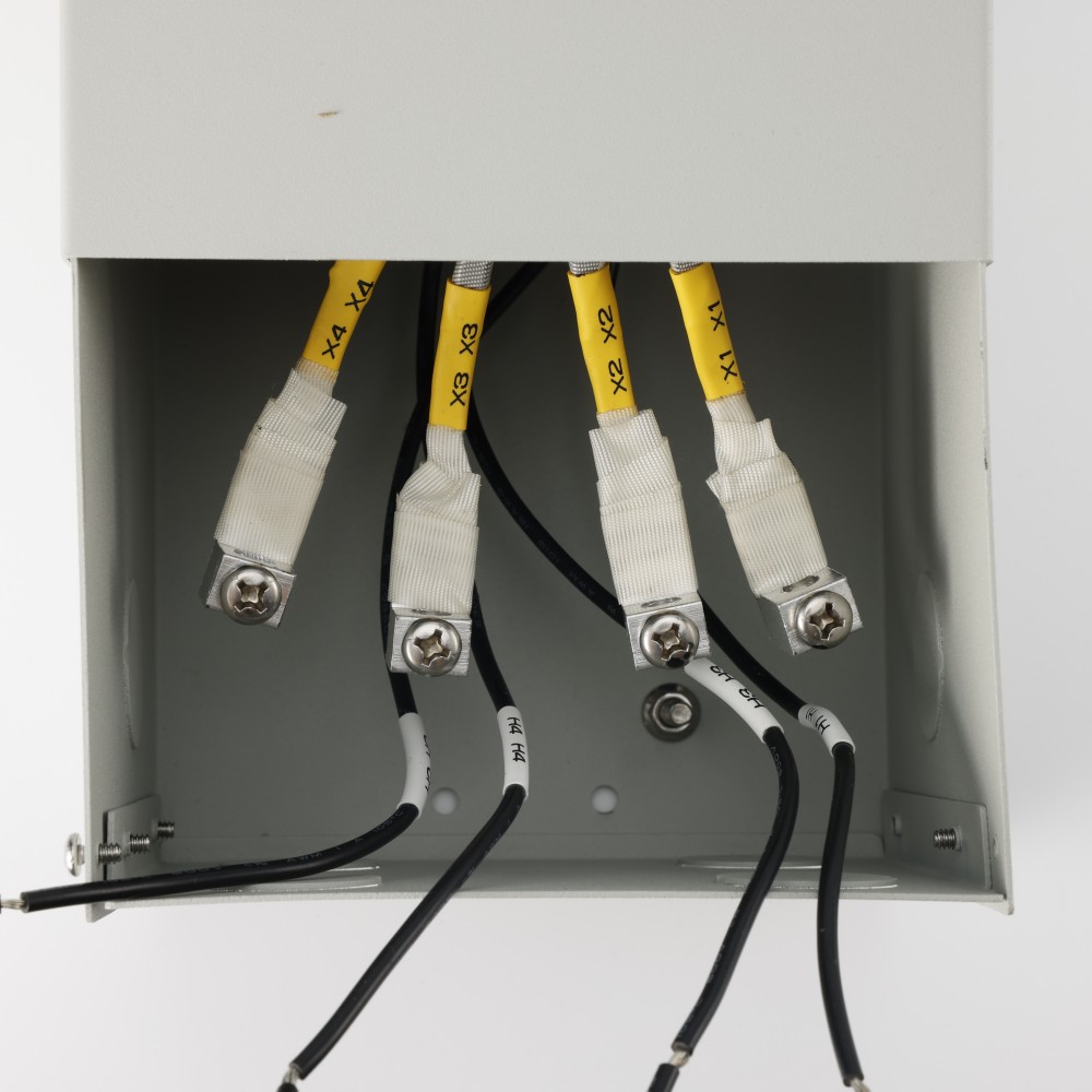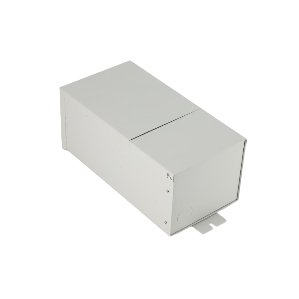 Housing: Gray powder-coated metal NEMA 3R Enclosure, with the mounting tab at the top and at the bottom.